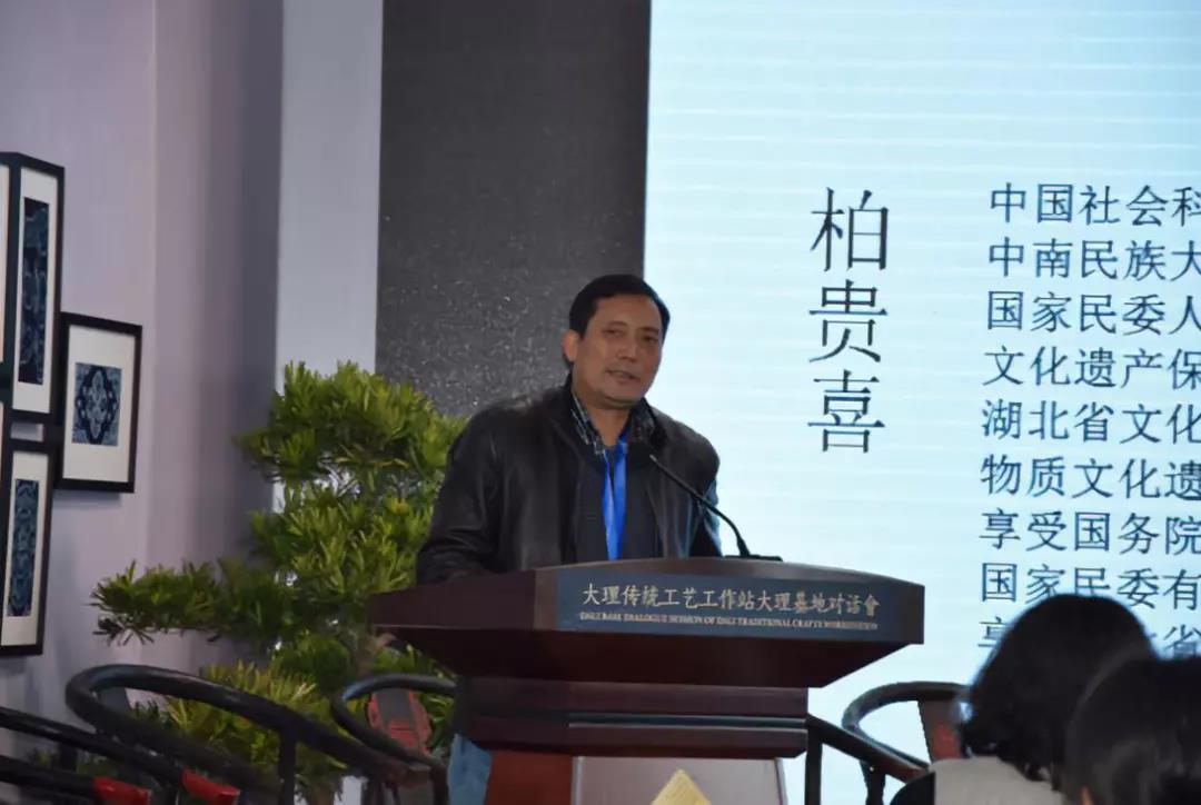 12月19日——12月20日,由文化和旅游部非物质文化遗产司支持,云南省文化和旅游厅、大理白族自治州人民政府主办,大理白族自治州文化体育局、大理市人民政府承办,大理市旅游文化体育广播电视局、大理市喜洲镇人民政府、云南艺术学院设计学院、云南民族大学艺术学院、大理传统工艺工作站大理基地、深圳东璟文化协办的“蓝白之上,匠心流光——大理传统工艺工作站大理基地对话会”在大理璞真白族扎染博物馆隆重召开。中心主任柏贵喜教授应邀参加并做主旨发言。