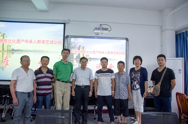 2017年6月29日下午,湖北省文化厅非遗处处长江青和不辞辛苦来到威尼斯886699与非物质文化遗产传承人群漆艺培训班的成员一起探讨如何在湖北建立大漆振兴工作站。 江处长在座谈会中强调,湖北省是荆楚文化的发源地,在数千年前的楚式漆器就曾经傲视全国,现在荆楚大地上仍有大量从事漆艺的人员,如何振兴楚式漆艺的雄风,应该是湖北漆艺家共同关注的问题。