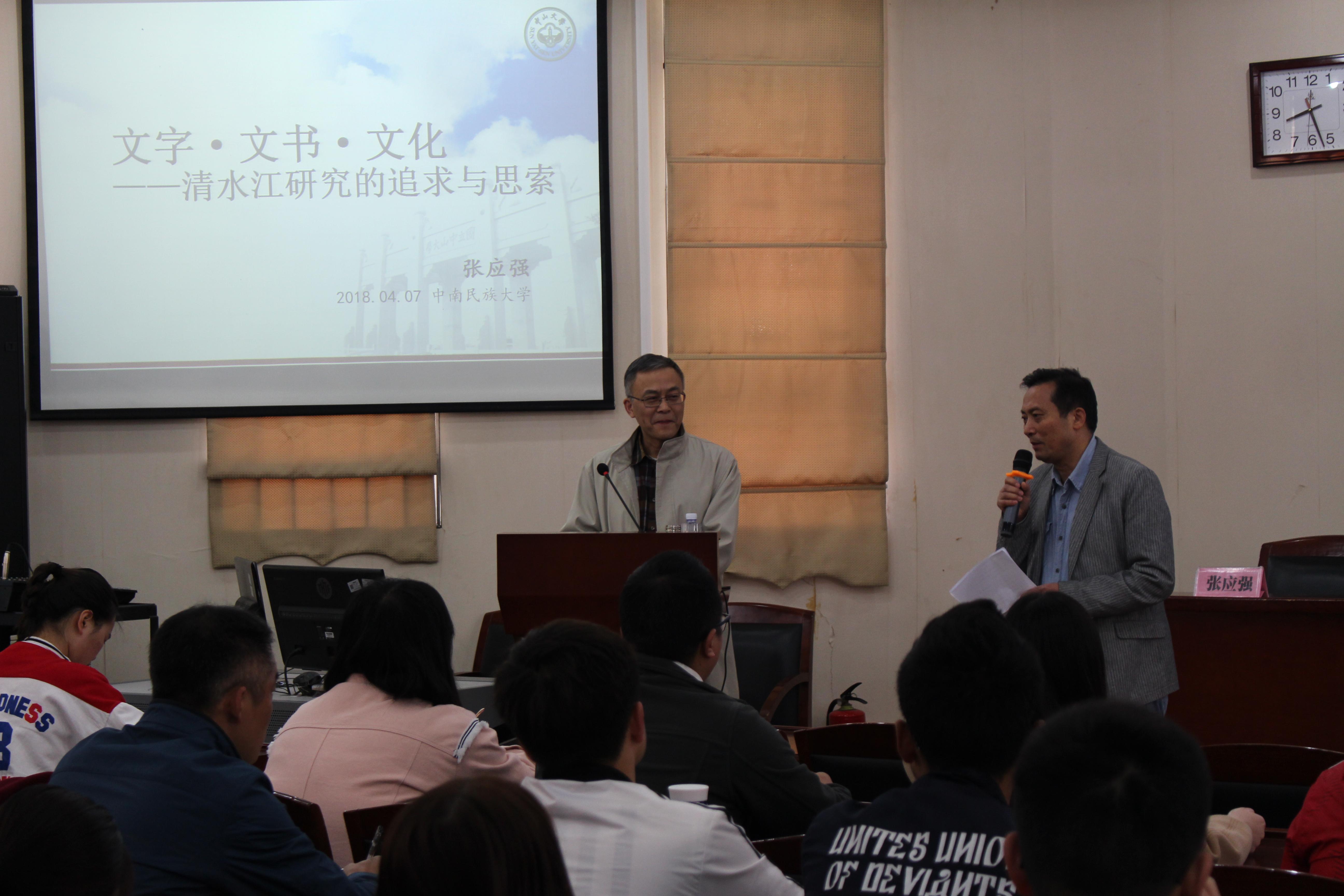 2017年4月7日上午,中山大学张应强教授应邀来威尼斯官网民社院八角楼一楼报告厅进行主题为“文字·文书·文化——清水江研究的追求与思索”的学术讲座。本次讲座由民族学与社会学学院、南方少数民族非物质文化遗产研究中心、研究生院、教务处共同举办,民族学与社会学学院柏贵喜教授主持。