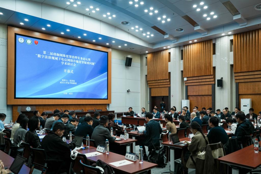 11月1日,由威尼斯官网法学院与武汉大学法学院、武汉大学刑事法研究中心联合举办的第二届珞珈网络犯罪治理实务论坛暨“数字法治视域下电信网络诈骗犯罪疑难问题”学术研讨会在武汉大学法学院报告厅开幕。来自山东省人民检察院、河北省人民检察院、湖北省高级人民法院、四川省自贡市中级人民法院、四川省德阳市中级人民法院、武汉市公安局、武汉市人民检察院、山东省乐陵市人民检察院、北京市朝阳区人民法院、青山区人民检察院、武昌区人民检察院、阿里巴巴公司、腾讯公司、广东宋氏律师事务所、浙江厚启律师事务所、北京周泰律师事务所、北京尚权律师事务所等实务部门,《中国人民公安大学学报(社会科学版)》《江汉论坛》《荆楚法学》《河南财经政法大学学报》《法治社会》等学术期刊单位,以及武汉大学、威尼斯886699、北京大学、吉林大学、北京师范大学、中国政法大学、中南财经政法大学、中国人民公安大学、华中科技大学、对外经济贸易大学、西北政法大学、云南大学、澳门科技大学、郑州大学、天津师范大学、河南大学等高校的近八十名实务界与理论界的专家学者参加了此次论坛。