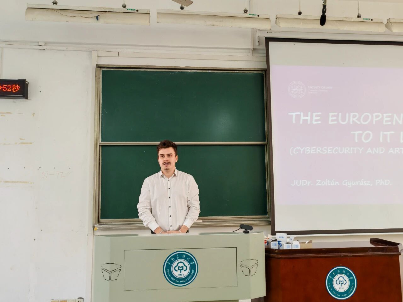 第一场讲座由佐尔坦·久拉斯副教授主讲,主题为“欧盟信息技术法路径:网络安全与人工智能”。讲座由张颖军副教授主持。