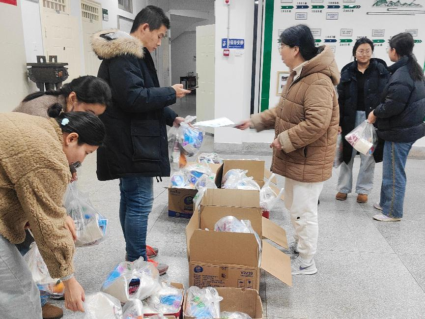 活动中,学子们收到了精心准备的考研礼包,当中不仅有纸巾、暖宝宝、帆布包等实用物品,还有具有美好寓意的“力”量满满——巧克力,好运“旺旺”——旺仔牛奶,“橙”功上岸——橙子。老师们将大礼包送到考研学子手中,亲切叮嘱大家要注意调整心态、注重劳逸结合,以最好的状态迎接考试。