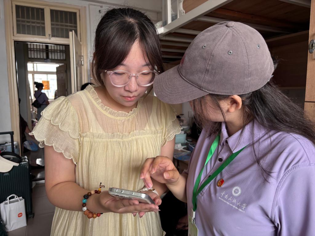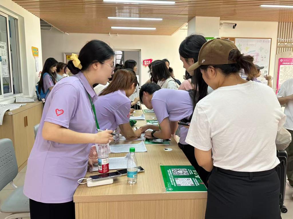 清晨伊始,身穿统一服装的志愿者们便已成为报到处里最亮眼、最活跃的风景。他们目光热切,笑容温暖,主动引导新生完成信息核对、办理报到、领军训服等流程。同时在宿舍区,他们协助新生录入宿舍信息、搬运行李,并主动分享校园生活实用信息,涵盖宿舍设施使用、生活配套位置等内容,以耐心服务保障新生顺利入住。