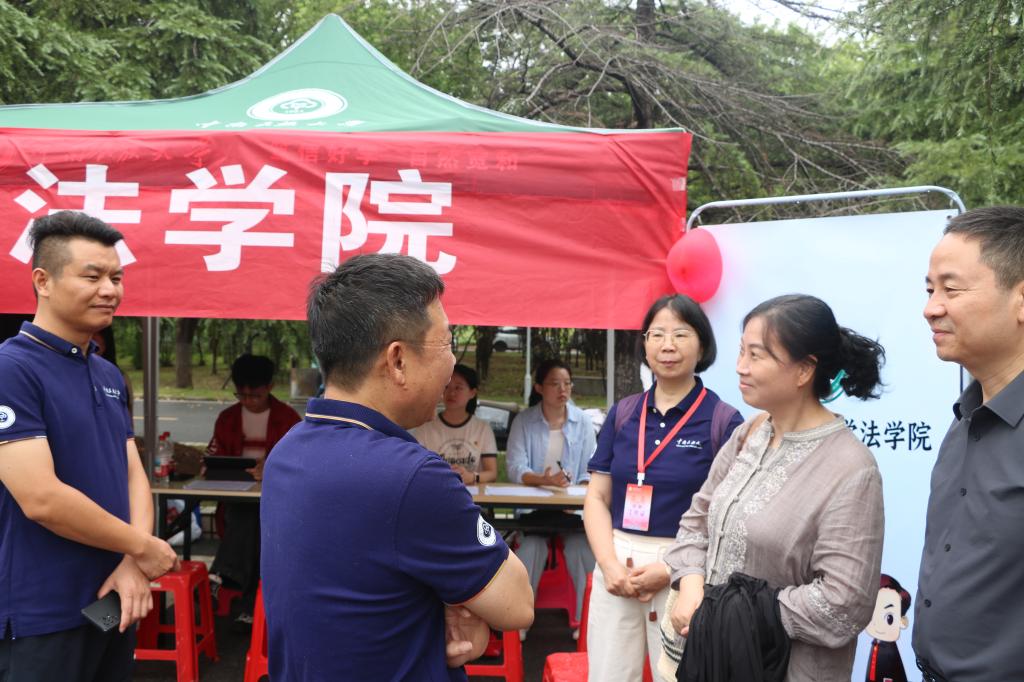 迎新现场,一份特别的感动悄然流淌。学院党委书记邓行、党委副书记兼纪委书记姜珍与2025级辅导员张利菊早早地来到了迎新一线。他们细致地查看每一个环节的流程,关切地询问迎新进展,反复叮嘱大家一定要为同学们提供最周全的保障。他们与工作人员亲切交流,向志愿者的辛勤付出表示感谢;更与远道而来的新生和家长们促膝谈心,分享大学生活的经验,聆听他们的想法与需求。从线上的第一声问候,到线下的第一次并肩,我们力求将关怀落在每一个细微之处。开学第一步,愿你踏实而温暖。法学院全体师生,正以最大的诚意,陪你稳稳走好大学生活的第一步。