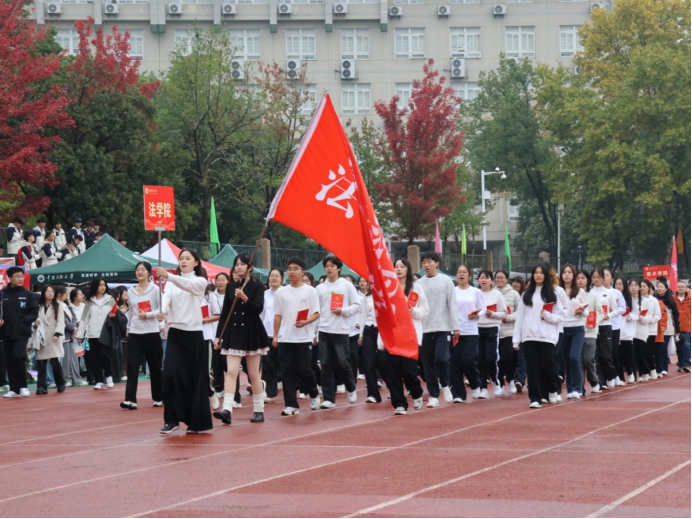 开幕式上,法学院方阵步伐铿锵、意气风发。法学院学子以整齐的队列展现纪律,以坚定的目光传递信念。如果正义有形,那应是他们行进时的姿态;如果法理有光,那必是他们眼中不灭的星火。