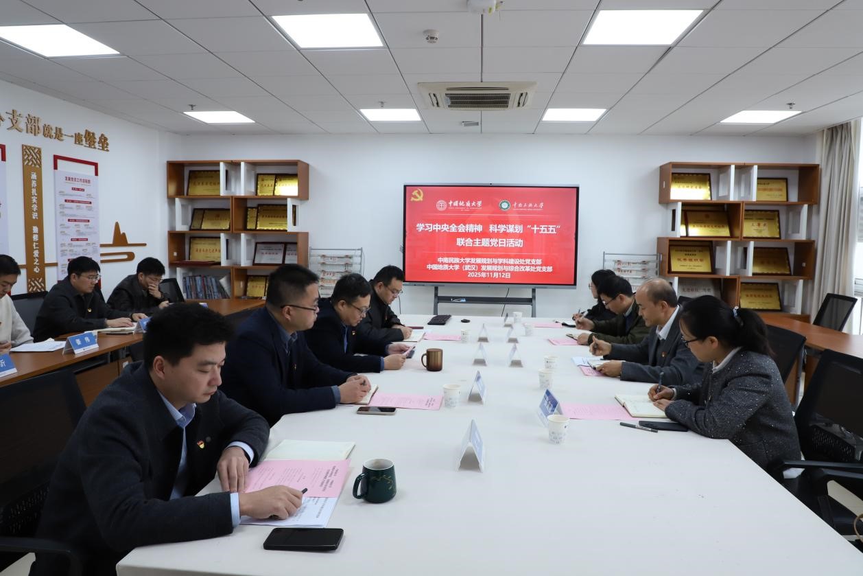 为进一步深化对新时代国家发展战略的理解,11月12日上午9时,我支部与中国地质大学发展规划与综合改革处党支部举办联学联建活动,共同深入学习党的二十届四中全会精神与习近平总书记在全国民族团结进步表彰大会上的讲话精神。