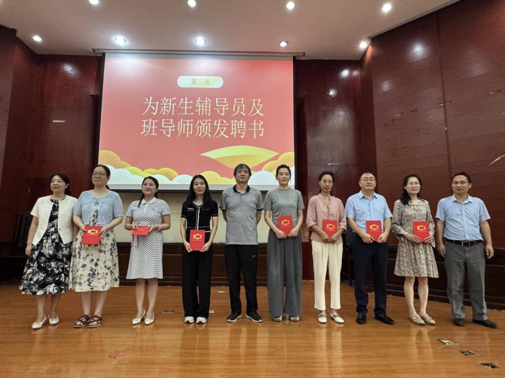 接着,学院领导为新生辅导员和班导师颁发聘书。聘张海燕、杨燕、雷盼3位老师担任2025级本硕新生辅导员,李世颉、蒋鹏、周娟、梅乐、张雄、陈彧6位老师担任2025级各班的班导师。受聘的老师们逐一发表了感言,为新生送去寄语和期盼,他们将为新生提供全方位的指导和帮助,陪伴和助力同学们的成长。