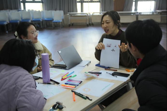 活动随后进入绘制能量源泉的环节。老师们思考并画下能为自己补充能量的人、事、物,可能是家人的支持、学生的成长、个人的兴趣爱好等。分享过程中,一个个温暖的能量故事被娓娓道来,极大地提升了团队的归属感与集体的心理能量。