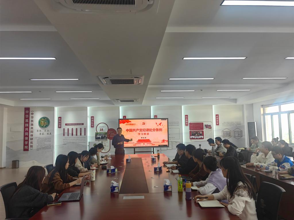 11月13日,我院在北书院508会议室开展2024年秋季党校培训班第四次集体授课,我院入党积极分子、发展对象及预备党员共30余名同学参加。本次党课主题为学习解读《中国共产党纪律处分条例》,由我院院长李从浩教授主讲。