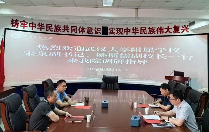 5月15日下午,武汉大学附属学校党委副书记宋泉、附属外校副校长姚斯儒一行到我院调研座谈。我院党总支书记贺展、院长李从浩参加座谈。座谈会由李从浩主持。
