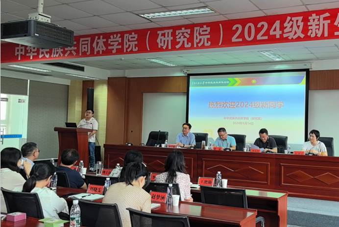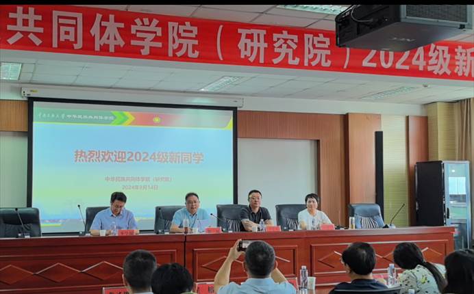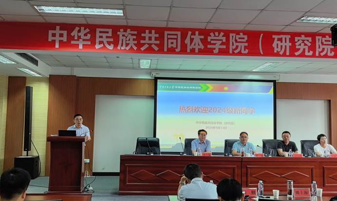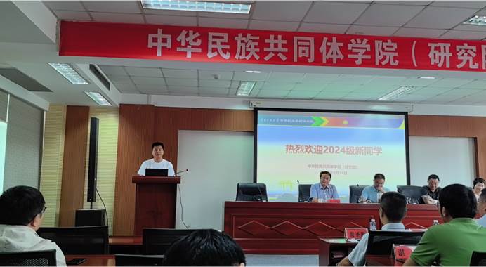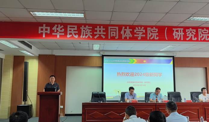 院研究生会主席熊永恒代表老生祝贺2024级同学迈上新台阶,希望他们立下新目标,祝愿他们拥有新生活,力争成为新时代有为新青年。