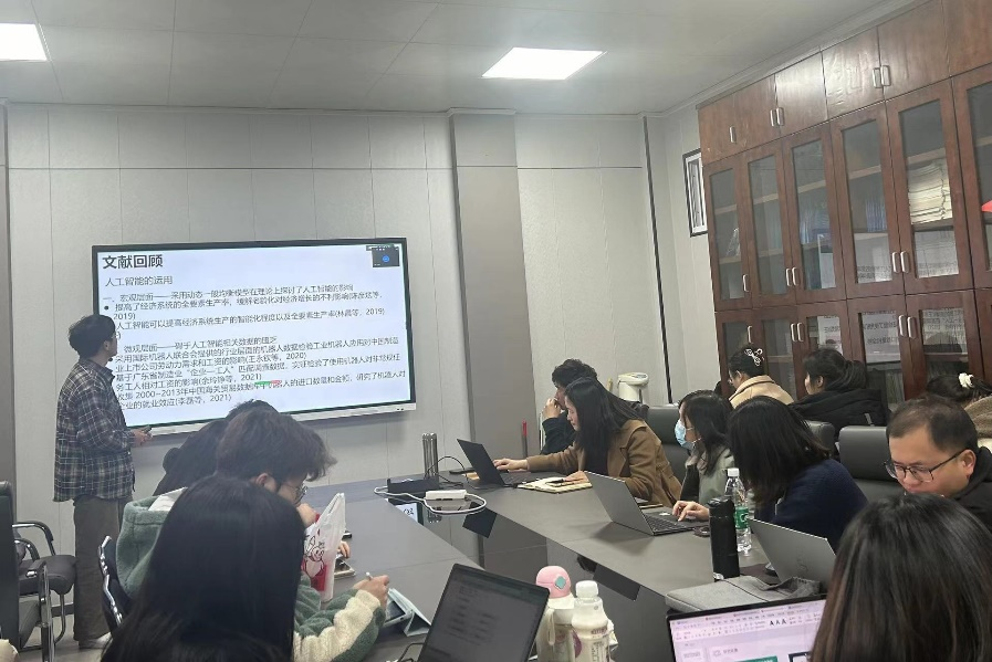 2022级学硕吴德满同学分享的文章是《人工智能如何提升企业生产效率——基于劳动力技能结构调整的视角》(作者:姚加权等)。首先,吴德满同学介绍了文章的研究背景和研究假说。接着,对文章的研究设计和实证检验部分进行了详细讲解。文章从微观层面探索人工智能对我国企业生产效率和劳动力技能结构的影响,发现人工智能显著提升了企业生产效率,调整了企业劳动力技能结构。最后,吴德满同学提出可以研究一些具体企业在人工智能优化工作流程以后对企业生产率的提升。