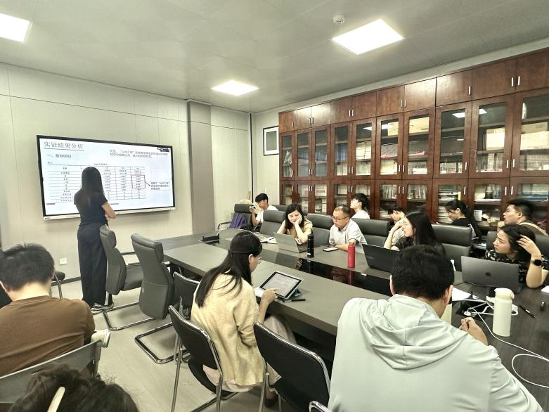 2024级专硕杨月涵同学分享的文章是《绿色转型发展中的财政激励与协同治理——来自“山水工程”试点的证据》(作者:祁毓等)。杨月涵同学首先介绍了政策背景以及现实挑战,接着引出本文的研究中心:财政如何解决激励问题以及财政如何推动协同治理。文章通过一系列实证分析发现,“山水工程”通过财政激励与协同治理,短期内显著改善生态环境,且效果在合作良好、财政能力强的地区更优。最后,杨月涵同学提出可以进一步研究“山水工程”产业链企业绿色转型中企业环境责任的治理机制。