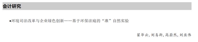 由我基地教师翟华云教授、刘亚伟副教授以及中南财经政法大学博士研究生刘易斯、中国财政科学研究院博士研究生高蔚然合作的论文《环境司法改革与企业绿色创新——基于环保法庭的“准”自然实验》在管理学权威期刊《南开管理评论》2025年第11期成功发表。