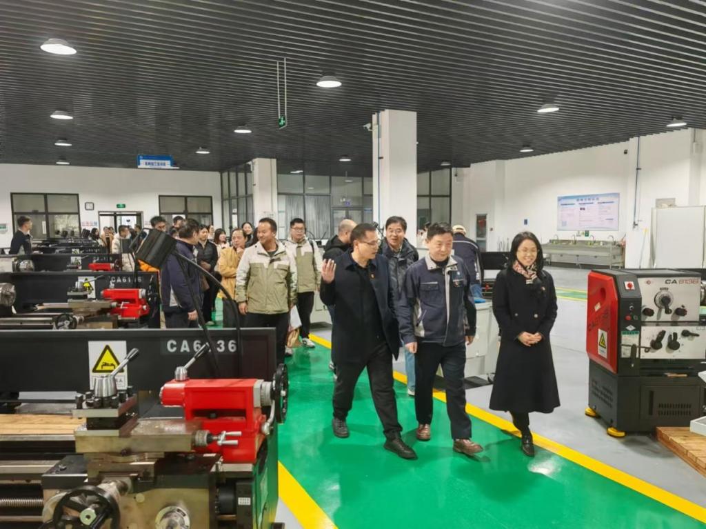 华中科技大学老师们参观了科技园区、学生实训区等,双方老师们就园区建设、学生培养等进行了深入交流。