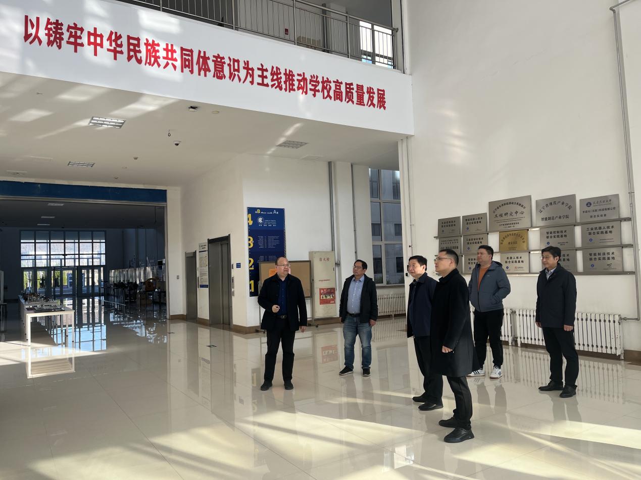 大连民族大学机电工程学院院长张涛对围绕铸牢中华民族共同体意识主线开展工作的情况、科技园运行工作尤其是实训基地、智能制造现代产业学院、学生创新实践等方面进行了深入交流。
