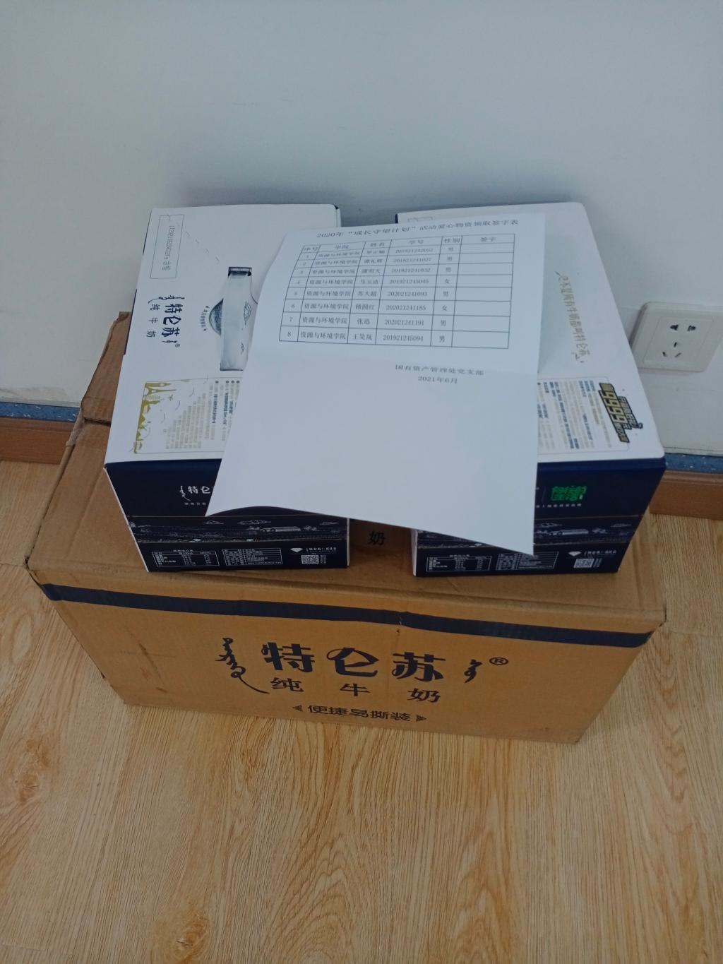 2021年6月,为帮助国资处对口“成长守望计划”资环学院学生应对炎炎夏日和期末备考,国资处全体党员同志自费为所联系8名学生送去爱心物资,每人一提牛奶,体现了国资处党支部全体党员的爱心关怀。