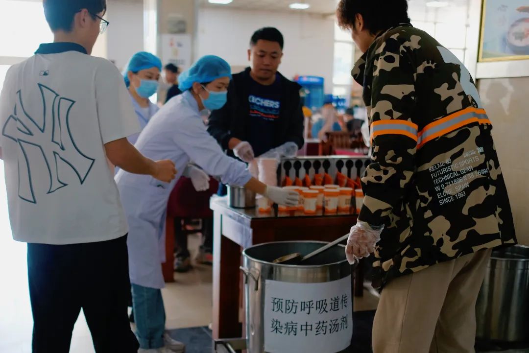 秋冬季气温变化大是呼吸道传染病的高发季节为了帮助师生做好预防提高自身免疫力学校后勤保障处全体党员于11月1日~11月3日(周三~周五)以支部为单位,分别在学校八个食堂为全校师生发放预防流感免费汤药。