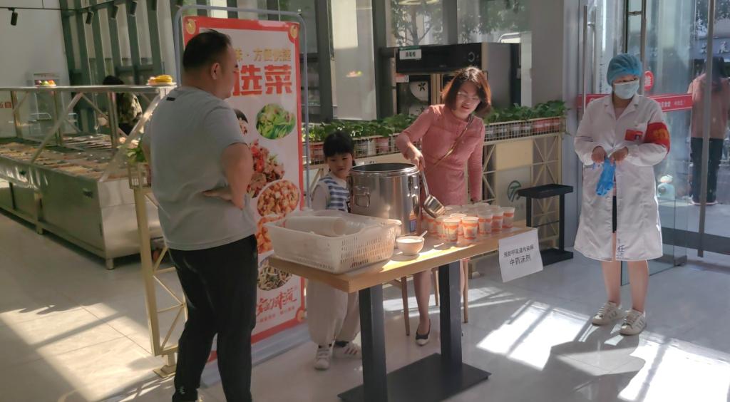 这份中药汤剂由校医院专业医师采用十余种中药材配制,并指导各大食堂的师傅们精心熬制。药剂的功效以健脾行气为主,佐以清热解毒,达到扶正祛邪、增强免疫力的作用。