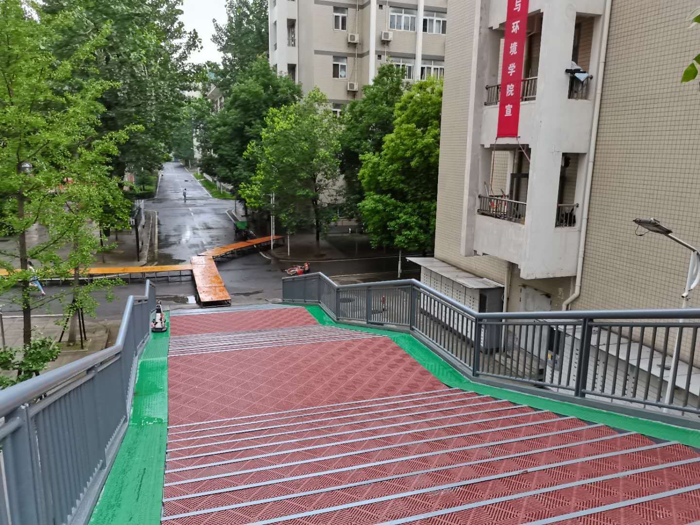 12点多,雨逐渐停了,后勤人才挽着裤脚带着疲惫回到食堂就餐,1点多,随着市政道路渍水下降,学校积水也很快消散,校园又恢复了平静,浮桥还在……。根据防疫工作领导小组的指挥,后勤人对渍水后的校园将进行全面消杀,切实保障师生安全。
