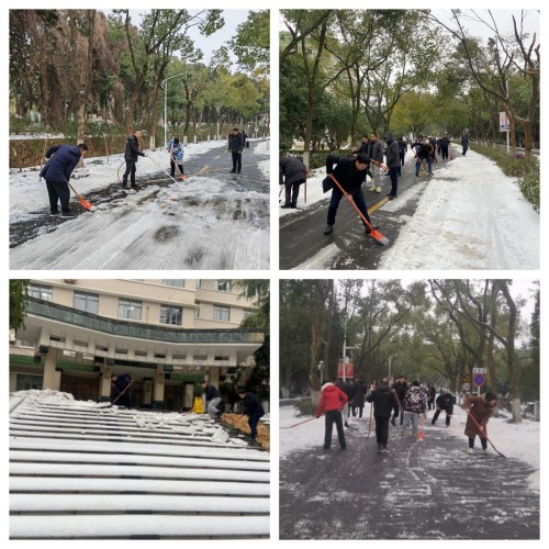 “雪前部署、以雪为令、随下随清、雪停路净”。后勤保障处党员、干部、一线员工冲锋在前, “机械+人工”密切配合,高效有序做好扫雪除冰工作,全力保障校园道路畅通和师生安全出行。
