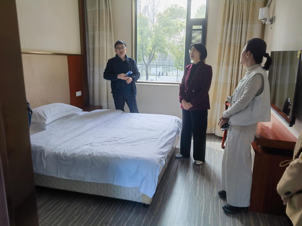 包莉娜一行的首站来到了接待服务中心餐厅和接待中心客房。在餐厅,她重点检查了用餐环境,在客房,包莉娜详细了解了客房的住宿安全情况,要求接待服务中心要进一步提升服务质量,为来宾提供温馨舒适的住宿环境。