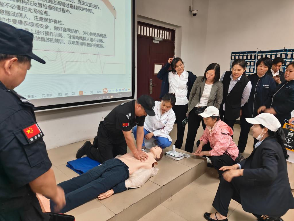 实操环节,物业员工学习热情高涨,积极参与模拟演练,反复练习胸外按压和AED操作,接收医生的现场指导,逐步掌握急救技能。