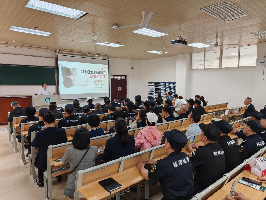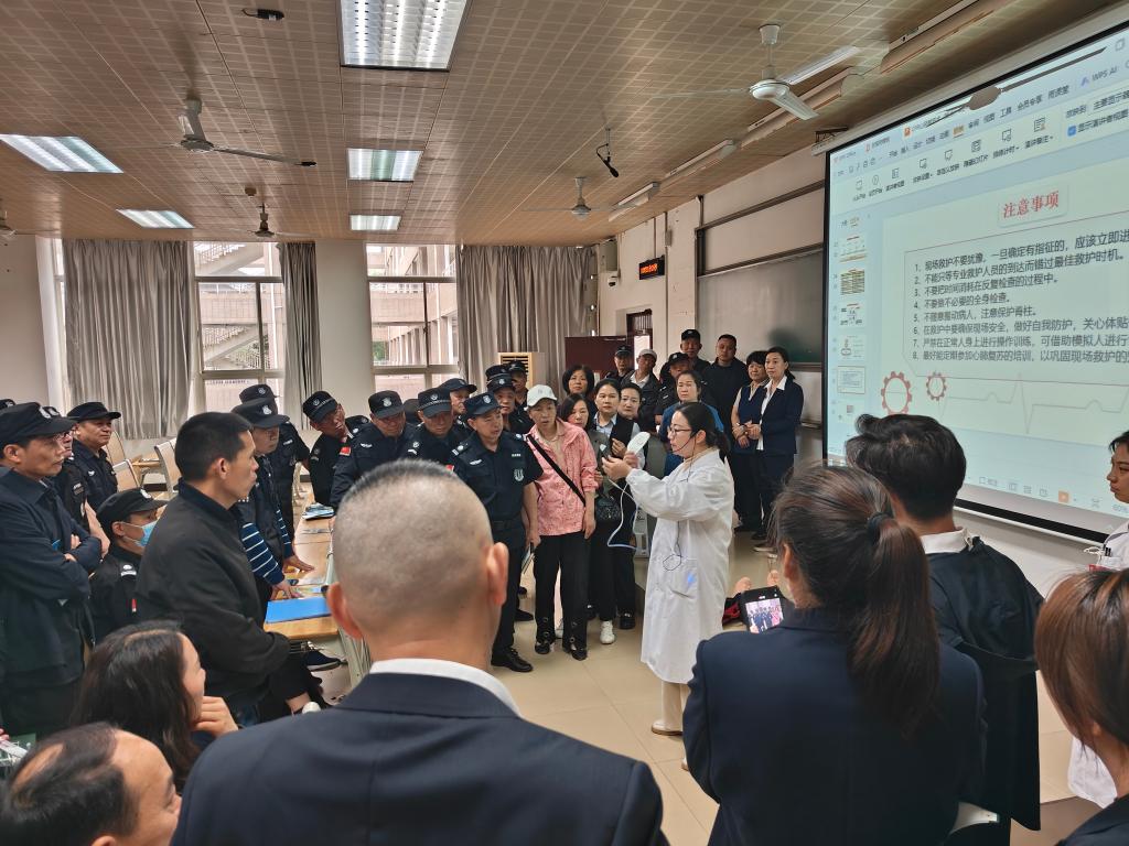 为进一步提升物业工作人员应急救护能力,保障校园师生生命安全,2025年4月24日上午,物业管理服务中心邀请校医院的专业医生为物业一线员工开展AED(自动体外除颤器)急救知识与技能专项培训,以理论结合实操的方式,学习了一堂生动实用的生命救援课程。