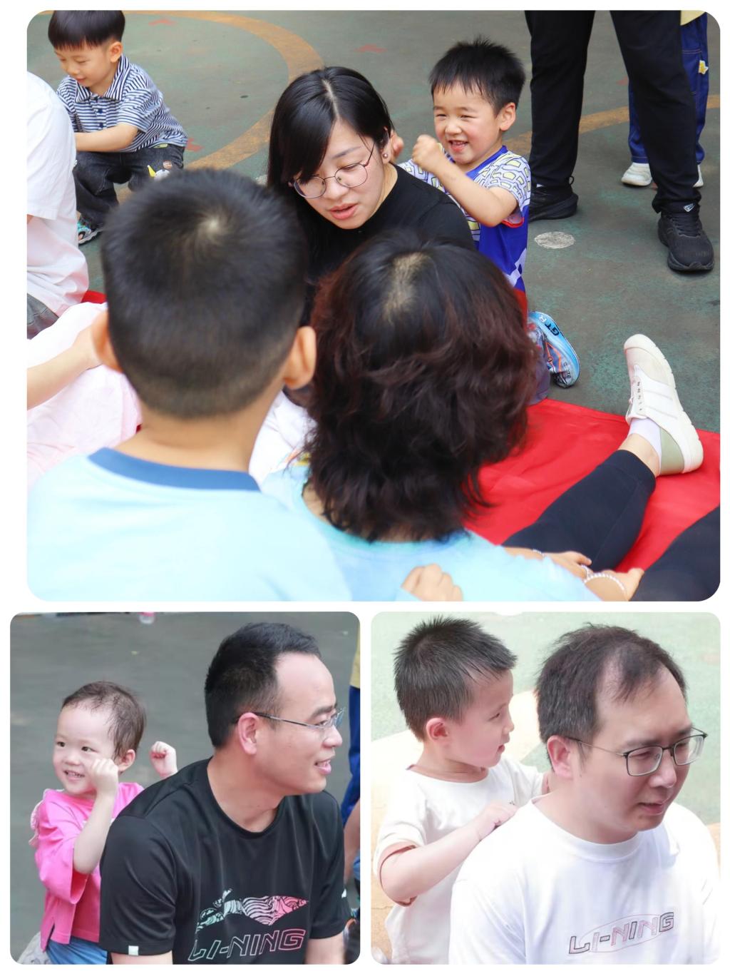 4.感恩时刻:捶背揉肩表心意:捶背揉肩表心意:孩子们让家长坐在溜溜布上,小手轻轻捶背、揉胳膊,“爸爸妈妈辛苦啦!”稚嫩的声音让无数家长心潮涌动。
