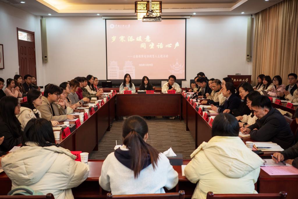 12月19日下午,后勤服务协同育人活动在国际学术会议中心举行。学生代表与各食堂管理员齐聚一堂,共话后勤服务发展,同迎冬至传统佳节。校党委常委、总会计师包莉娜,校团委、后勤保障处负责人参加此次座谈会。会议由后勤保障处副处长陈冬主持。