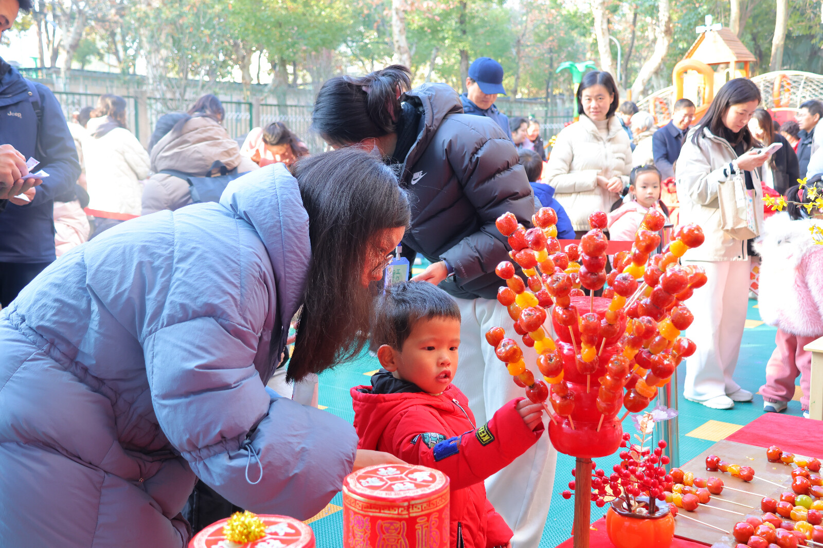 “棒棒‘爆’福”区里,艺人巧手翻飞,将混有玉米粒的江米精准压入模具,“滋滋”声响中,金黄的螺旋米棍应声而出。家长与孩子接过酥脆香甜的米棍,一口下去,香甜在口中弥漫,脸上满是藏不住的满足与喜悦。“‘糖’绘吉祥”摊前,艺人手持糖勺从容流转,金黄的糖浆在青石板上徐徐铺开,顷刻间,矫健的骏马、绚丽的蝴蝶、机敏的小蛇、温顺的玉兔便跃然眼前,栩栩如生的糖画让孩子们直观感受非遗技艺的神奇魅力,纷纷拍手称奇。“‘葫’送安康”区域,一串串山楂裹上晶莹剔透的柠檬味糖衣,宛如剔透琉璃。孩子们轻轻舔舐,酸甜滋味在舌尖化开,迫不及待地仰头与父母分享:“好甜呀!”“‘糍’旧迎新”环节更是温馨满满,亲子携手握棍捶打糍粑,米粒在协作捶打中渐渐绵软柔韧。品尝着裹满糖霜与芝麻的热乎糍粑,大家不仅体验了传统劳作的乐趣,更读懂了新年“蒸蒸日上”的美好寓意。