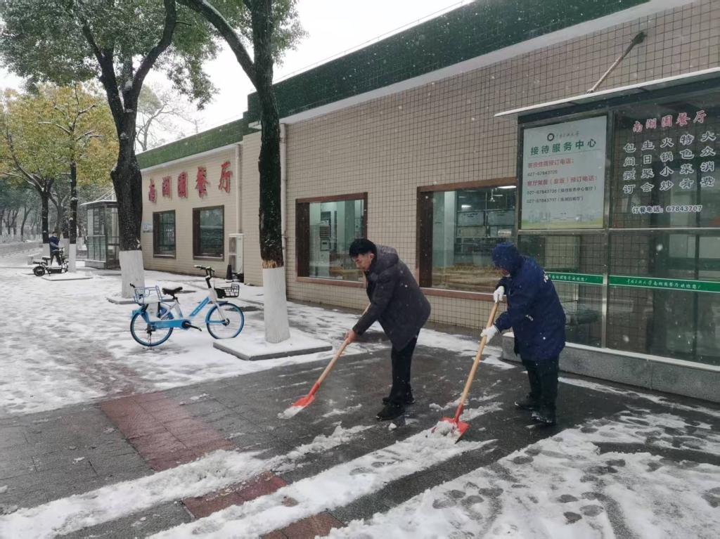 1月20日清晨6时许,雪花悄然洒落校园,为校园披上银装的同时,也给师生出行、校园运行带来了诸多安全隐患。面对突如其来的降雪及低温天气,后勤保障处成立以江玲、李川国为组长,郑重、陈冬、王慧为副组长的应急工作领导小组,迅速启动抗冰雪灾害天气应急预案,统筹协调各中心力量,组建50余人的党员、教工应急队伍,开展为期五天的应急值班值守。以雪为令、闻雪而动,全方位保障全校师生工作、学习、生活有序开展。