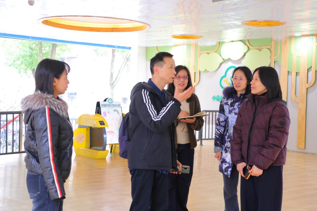 检查期间,周德军一行深入班级活动室、户外活动场地等重点区域,实地察看园所环境创设、设施设备运行、安全管理落实及教育教学准备等情况。检查组对幼儿园整洁优美的园所环境、齐全完善的设施设备给予充分肯定,认为园内幼儿生活与游戏环境温馨舒适、保障有力,充分彰显了学校及幼儿园对幼儿健康成长的高度重视,生动展现了“自然和谐美美与共”的办园特色。
