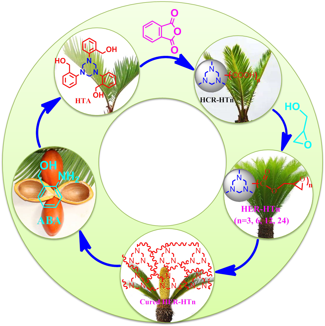 图2. 可降解热固性超支化聚合物的合成路线与循环利用示意图.