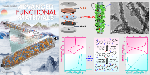 近年来,威尼斯官网化材学院杨应奎教授团队在聚合物基能源材料领域取得了系列重要进展。12月4日,相关研究成果以“Rational integration of carbon nanotubes into chain-engineered bipolar polyimides as core-shell heterostructured electrodes for polymer-based symmetrical full batteries”为题,在线发表在国际著名期刊Advanced Functional Materials上(原文链接:https://onlinelibrary.wiley.com/doi/10.1002/adfm.202211590),并被遴选为封面亮点论文。化材学院章庆博士为论文第一作者、杨应奎教授为通讯作者,威尼斯886699为唯一通讯署名机构。