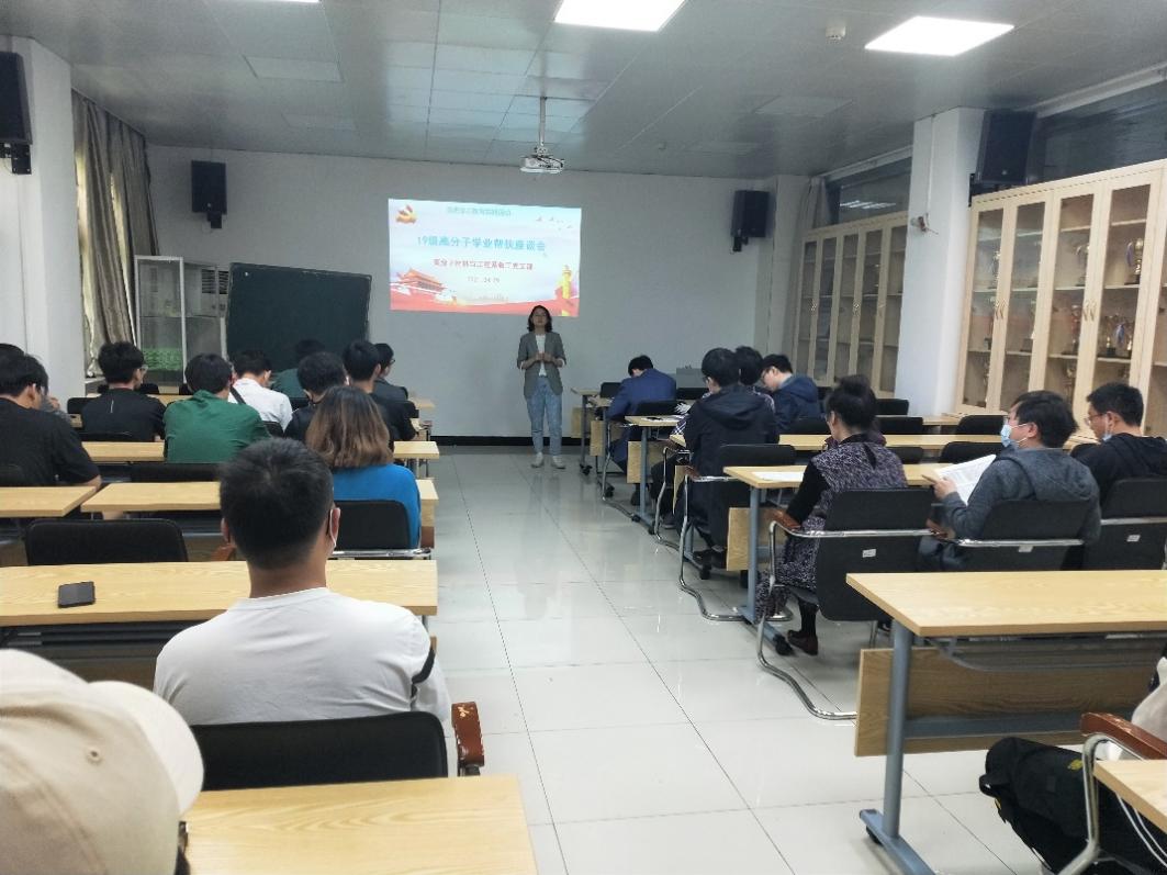 座谈会由高分子系教工党支部书记李婷同志主持,会议邀请了 2619级高分子同学,并向同学们介绍了高分子系教工党支部参与帮扶活动的15位教师党员,并分析了目前19级高分子专业学生的学业情况。结合教师党员的专业优势和丰富的教学经验,会议现场15名教师党员与26位存在不同学业困难程度的同学结为帮扶小组,开展长期跟踪式的精准帮扶行动。