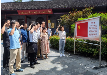 在讲习所旧址的教务处墙上,挂着一块很大的展板,上面写着《中央农民运动讲习所规约》的全文,规约明确规定了学习任务和目的,并着重强调了思想改造的重要性,从这里走出的800多名学员,成为我党为挽救中国革命而举行的南昌起义、广州起义、黄麻起义、秋收暴动等农民运动的中坚力量。参观完后,大家深受感染、心潮澎湃,在支部书记李婷的带领下,党员同志集体并郑重地重温了入党誓词,这一句句誓词,是新时期我们党员对党的庄严承诺。