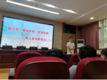 紧接着,黄涛老师就当前考研形势进行分析,并就考研准备、目标选择及未来发展等给同学们提出了良好的建议。此外,方怀防老师根据自身求学情况提出,可以把出国深造纳入考虑范围池泉老师根据考研政策的变化建议同学们可以优先考虑报考专侯双双老师严新稳老师从自己及家人的求学经验告知同学们考研的重要性,希望同学们尽自己努力去尝试,不让自己后悔,并根据自身及学长学姐的例子给同学们提出了合理化的建议。