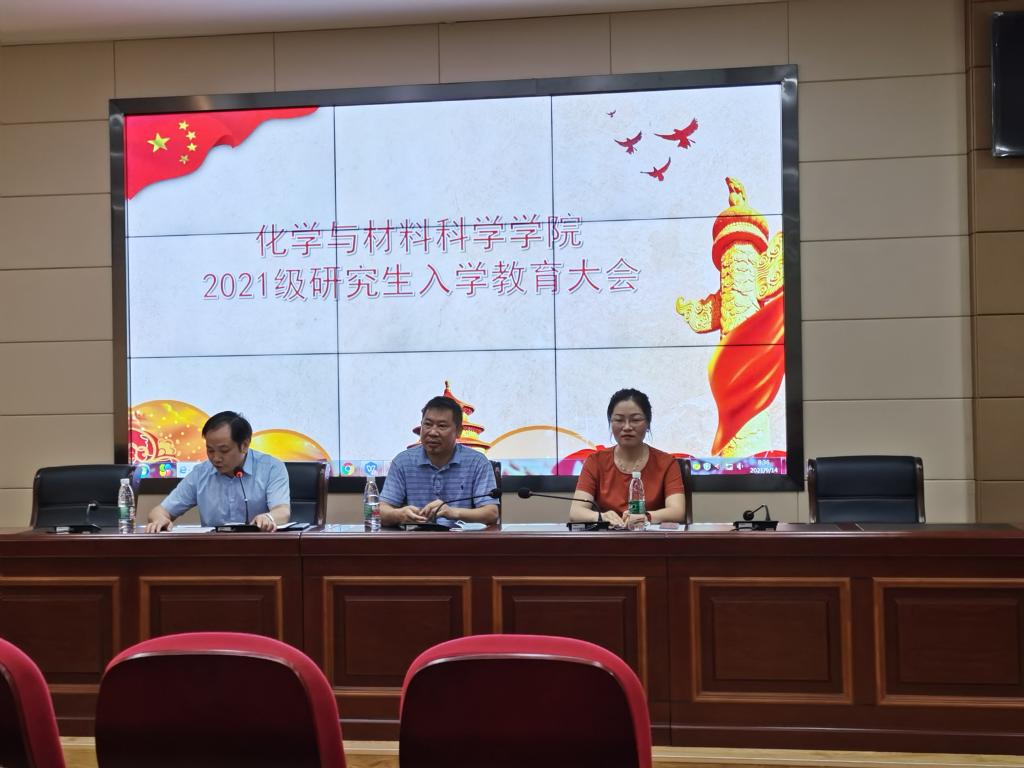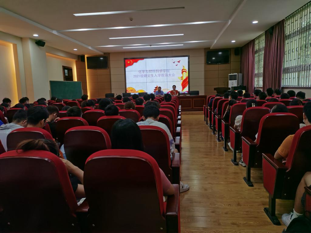 2021年9月14日上午8:30,我院研究生新生入学教育会议在化材院一楼大会议室顺利召开。本次会议由研究生辅导员主持,学院党委书记邓行、院长张道洪教授、副院长金士威教授、教师代表洪景萍教授、及化材院2021级全体研究生参加了此次会议。