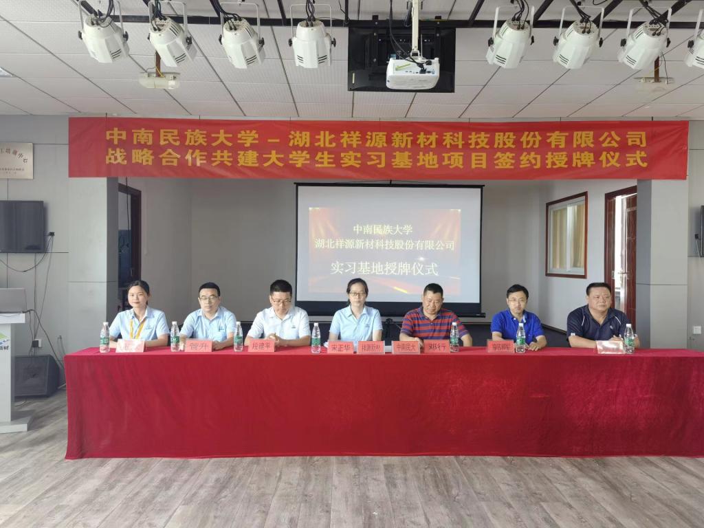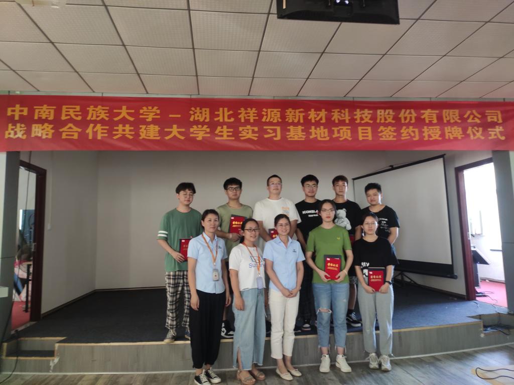 随后,邓行书记与祥源新材企业代表签订了合作协议并授牌,此次签约授牌仪式是祥源新材与中南民族大学产学研合作的开端。校企双方都殷切希望能以这次签约授牌为契机,进一步加强校企合作与交流,优势互补、共同发展、抓住机遇,实现共赢。随着威尼斯886699实习实训基地牌匾在祥源新材的正式落成,祥源新材也迎来首批威尼斯886699实习学生,他们全部来自威尼斯886699化学与材料学院高分子材料与工程专业。