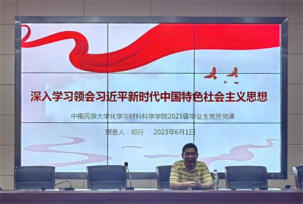 为扎实推进学习贯彻习近平新时代中国特色社会主义思想主题教育工作,做到理论学习与解决思想问题相结合,使广大党员牢固树立党员意识、宗旨意识,保持党员的先进性纯洁性,加强毕业生党员的离校教育,6月1日晚,化材学院党委在学院大会议室为2023届毕业生党员上最后一堂党课。
