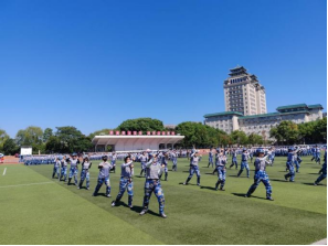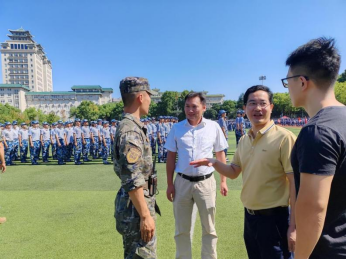 化学与材料科学学院2022级共有382名新生参加军训,编入军训二营3、4、8、9军训连。学院学生工作办主任张雪花,2022级辅导员叶烜瑞、王奎,2023级辅导员季维,一同前往。