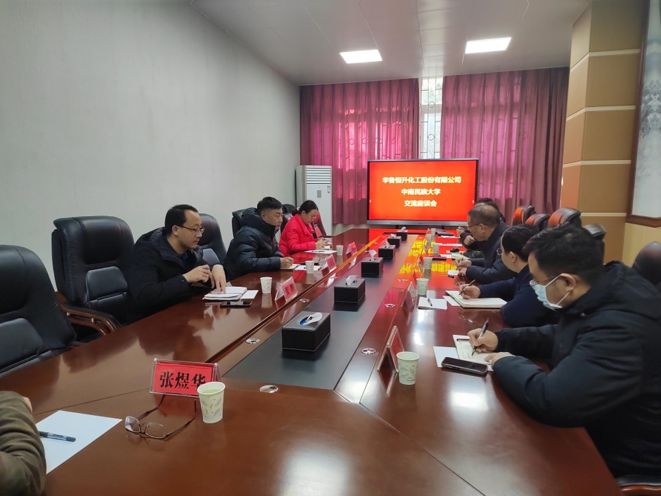 2023年12月6日上午,山东华鲁恒升公司常务副总经理于富红率领研发部崔丽凤经理和张鹏博士来院进行技术研发和人才需求合作交流。校党委副书记、副校长宋发军和院领导祁帆、张道洪、金士威、王立及有关教师代表参加座谈会。