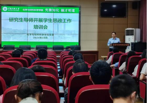 为切实强化“三全育人”工作,提升学生教育和管理工作的质量和效能,10月17日下午,化材院于7号楼学术报告厅举办研究生导师、本科生班导师工作培训会。学院领导、研究生导师、本科生班导师参会。