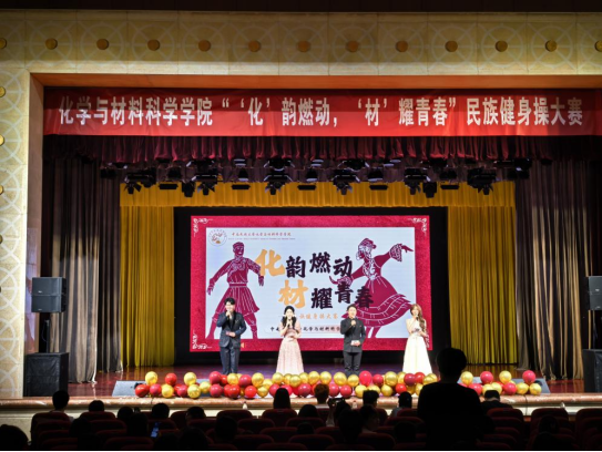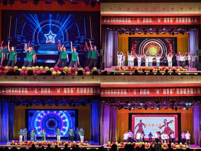 2025年4月26日晚,化材院在学术会堂举办了“‘化’韵燃动,‘材’耀青春”民族健身操大赛。学院2023级、2024级的11个班级团支部同台竞技,以昂扬的精神风貌、整齐的韵律动作,为现场观众呈现了一场青春洋溢的民族健身操表演。