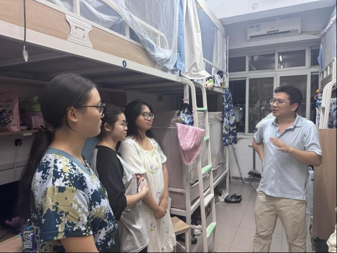 走访中,老师们还对新生的大学学习生活提出了殷切期望与具体指导,鼓励同学们尽早做好学业规划、明确学习目标,树立考研信心、合理安排时间,并倡导大家互帮互助,共同营造积极向上的寝室氛围。