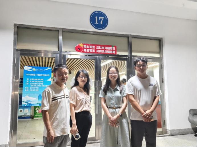 为深入了解2025级新生入校后的适应情况,传递学院关怀,9月15日晚,化学与材料科学学院党委副书记钱红亮、2025级新生辅导员及各班班导师共同组成宿舍走访小组,深入新生宿舍,与同学们开展“面对面”交流,细致了解新生的基本情况和思想动态。