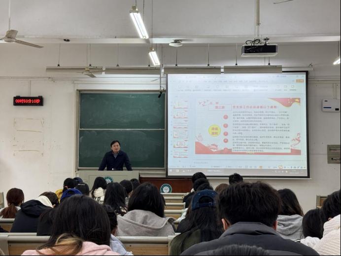 10月25日上午,化材学院党委副书记钱红亮在11号教学楼208教室为化材学院全体入党积极分子、发展对象与预备党员讲授第二次集中培训党课。