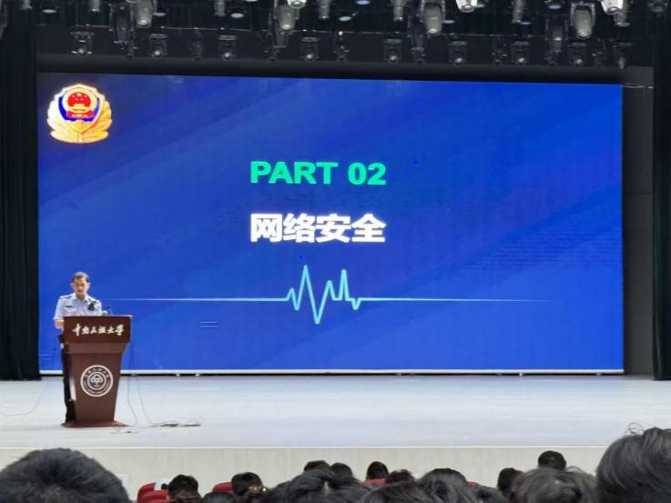 此外,讲座还涵盖了基础法律法规教育部分。吴警官简要讲解了与大学生活密切相关的法律常识,强调了遵守校纪校规与国家法律法规的重要性,引导新生们自觉学法、懂法、守法、用法,学会运用法律武器维护自身正当权益。