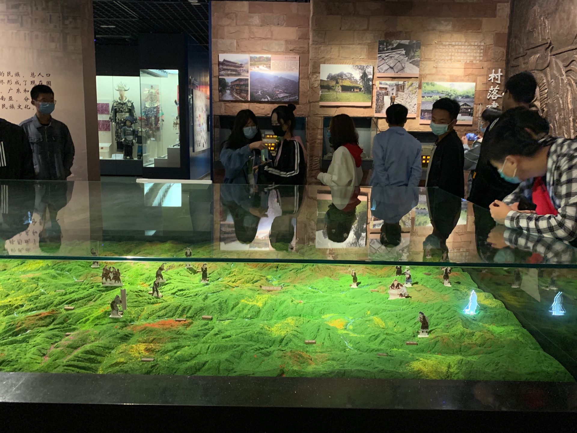 该次活动内容的主题为“绽民族繁华,塑世纪英才”,旨在培养学生正确对待和处理民族问题的基本素养,增强各族学生维护民族团结和责任感与自觉性。伴随着淅淅沥沥的小雨,同学们刚进馆,便有博物馆解说员接引,带领着学生们进入第一展厅。解说员们身着特色民族服饰,为同学们详细介绍了记载历史的古代画卷,展示了各民族特有的乐器以及服饰。
